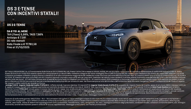 Vieni presso i concessionari DS per verificare se puoi accedere agli incentivi statali e come.